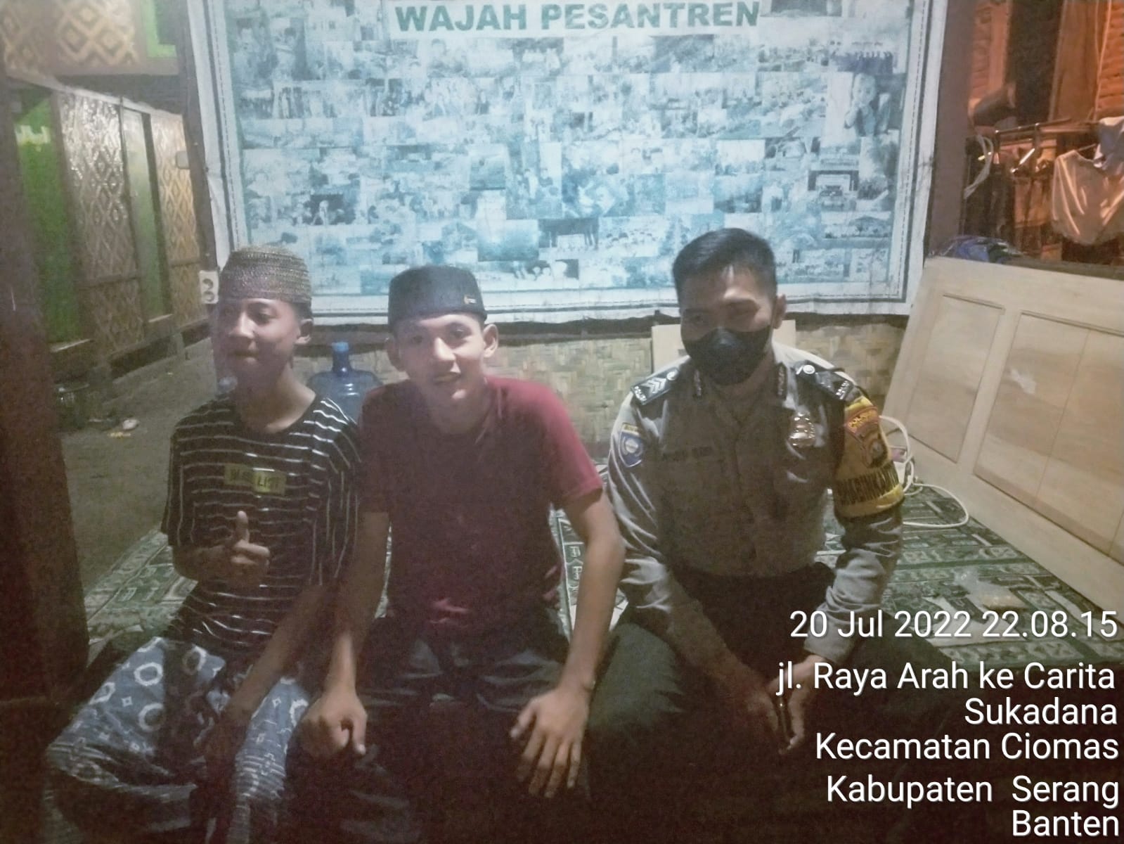 Polresta Serkot Rabu,20/07/2022 Bhabinkamtibmas Polsek Ciomas Polresta Serkot patroli pesantren di wilayah hukum Polsek Ciomas Polresta Serkot himbau prokes kepada santri.
