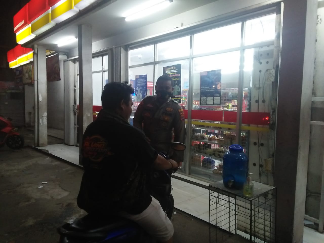 POLRESTA SERKOT | Anggota Polsek Baros Polresta Serkot Bripka Hari Trisyono mengingatkan dan memberikan himbauan kamtibmas pada warga yang sedang melakukan aktifitas di obyek obyek vital dan pengguna jalan yang tidak pakai masker, Rabu (20/7/2022) Malam.