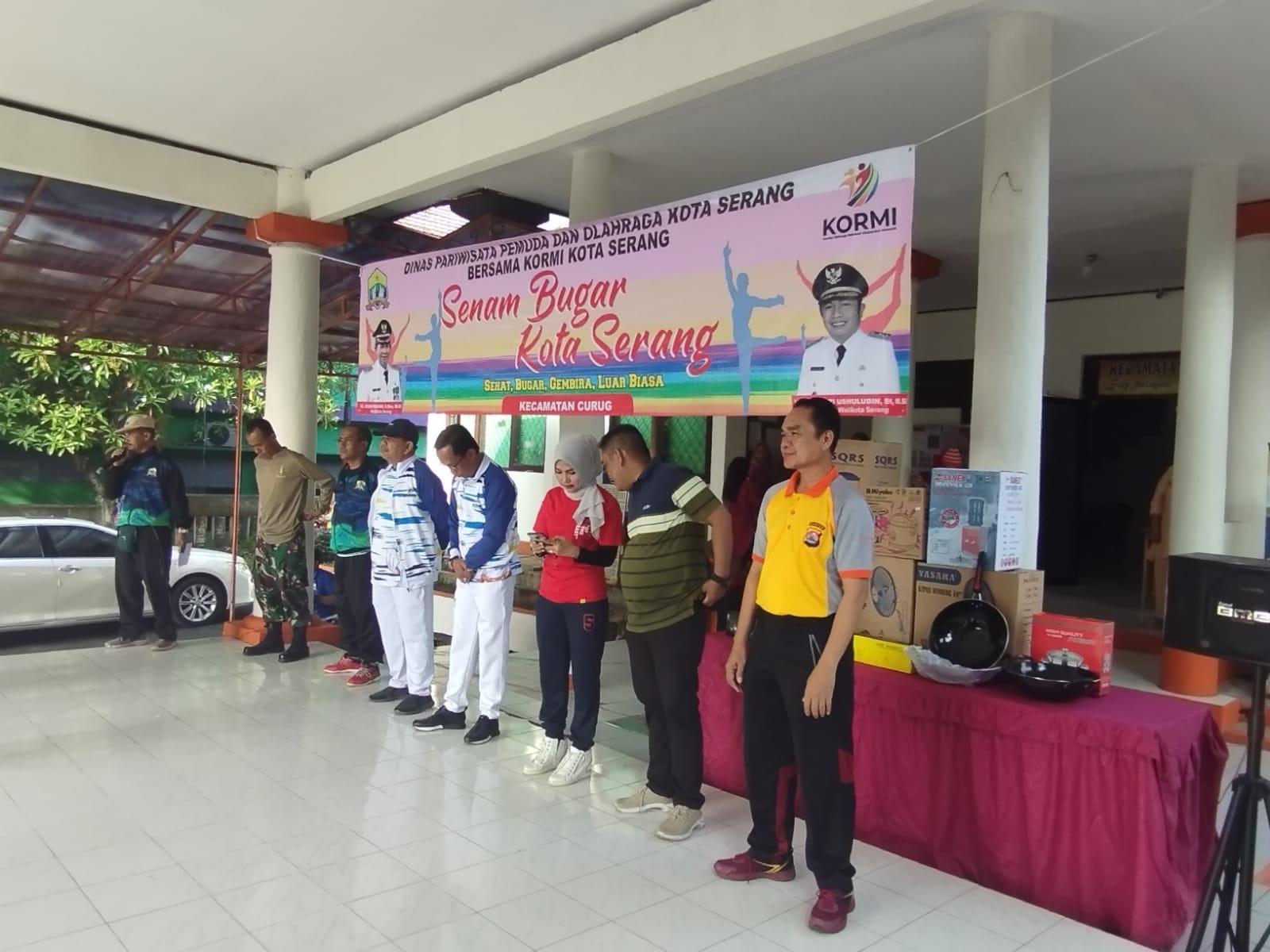 POLRESTA SERKOT_ Kapolsek curug beserta anggota melaksankan giat olah raga bersama dikantor Kecamatan Curug yang diselenggarakan oleh Dispora Kota Serang.