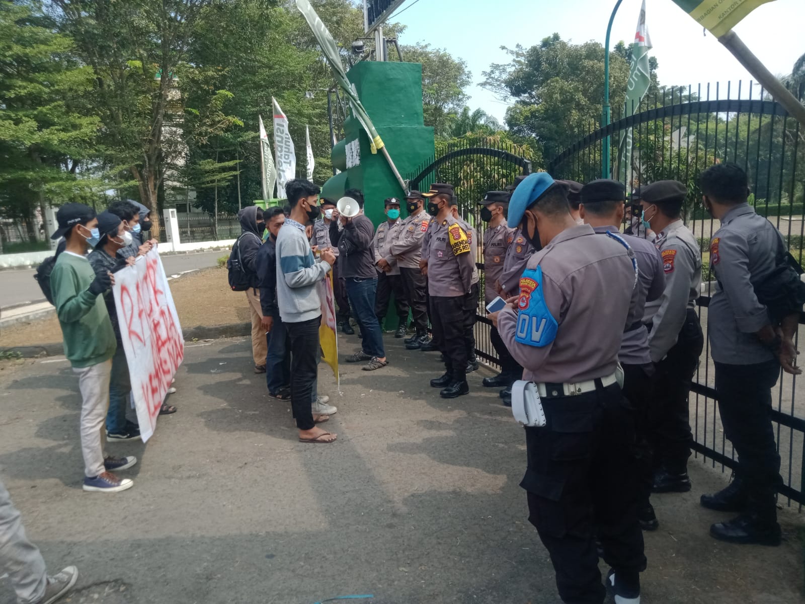 POLRESTA SERKOT_ Kapolsek Curug Polresta Serkot AKP DEDI R,SH.dan anggota yang terlibat dalam surat perintah tugas laksanakan pengamanan dan pendisiplinan prokes unjuk rasa yang dilakukan oleh mahasiswa yang tergabung dalam wadah GAMAIS(Gabungan mahsisa Islam)diKanwil Depag-KP3B Propinsi Banten.