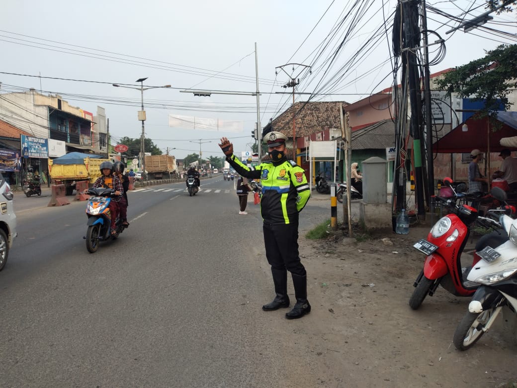 Polres Serkot | Anggota Unit Lantas Polsek Kramatwatu Polres Serkot Polda Banten Bripka Eki.S beserta Brigpol Agung melaksanakan kegiatan Pagi melayani yakni pengaturan lalu lintas situasi arus lalin pagi ini terpantau lancar dan aman terkendali,Kramatwatu Kec. Kramatwatu Kab. Serang,kamis (21/7/2022).