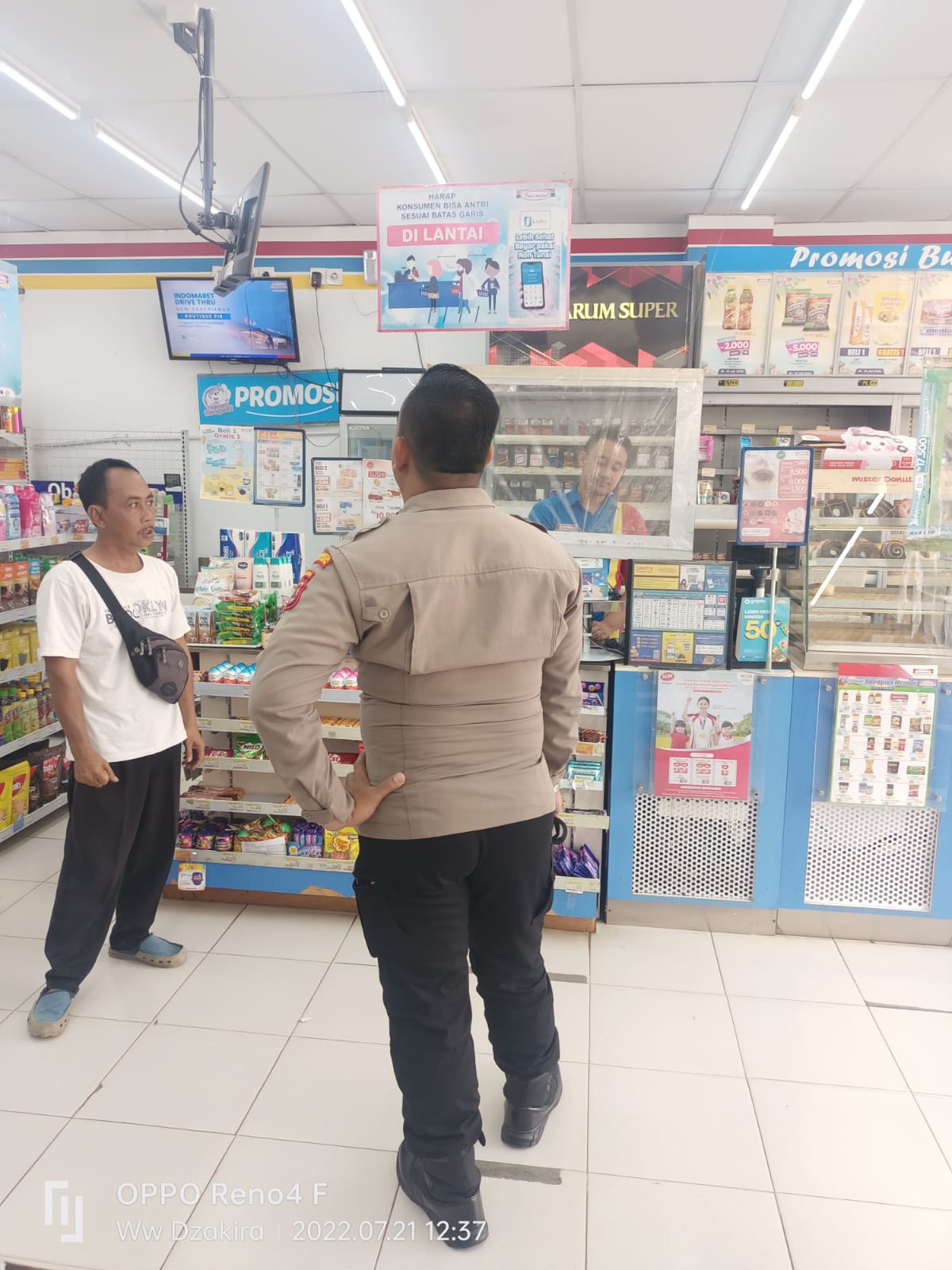 POLRESTA SERKOT| Personil Polsek Pabuaran Polresta Serkot Polda Banten Bripka M. Agus Tomi bersama Anggota melaksanakan Patroli dialogis dengan mendatangi Alfamart maupun indomart pastikan aman memberikan himbauan Kamtibmas serta mengingatkan kembali himbauan dan edukasi protokol kesehatan kepada pelayan untuk selalu menerapkan 5 M Protokol Kesehatan.Kamis,(21/07/2022)