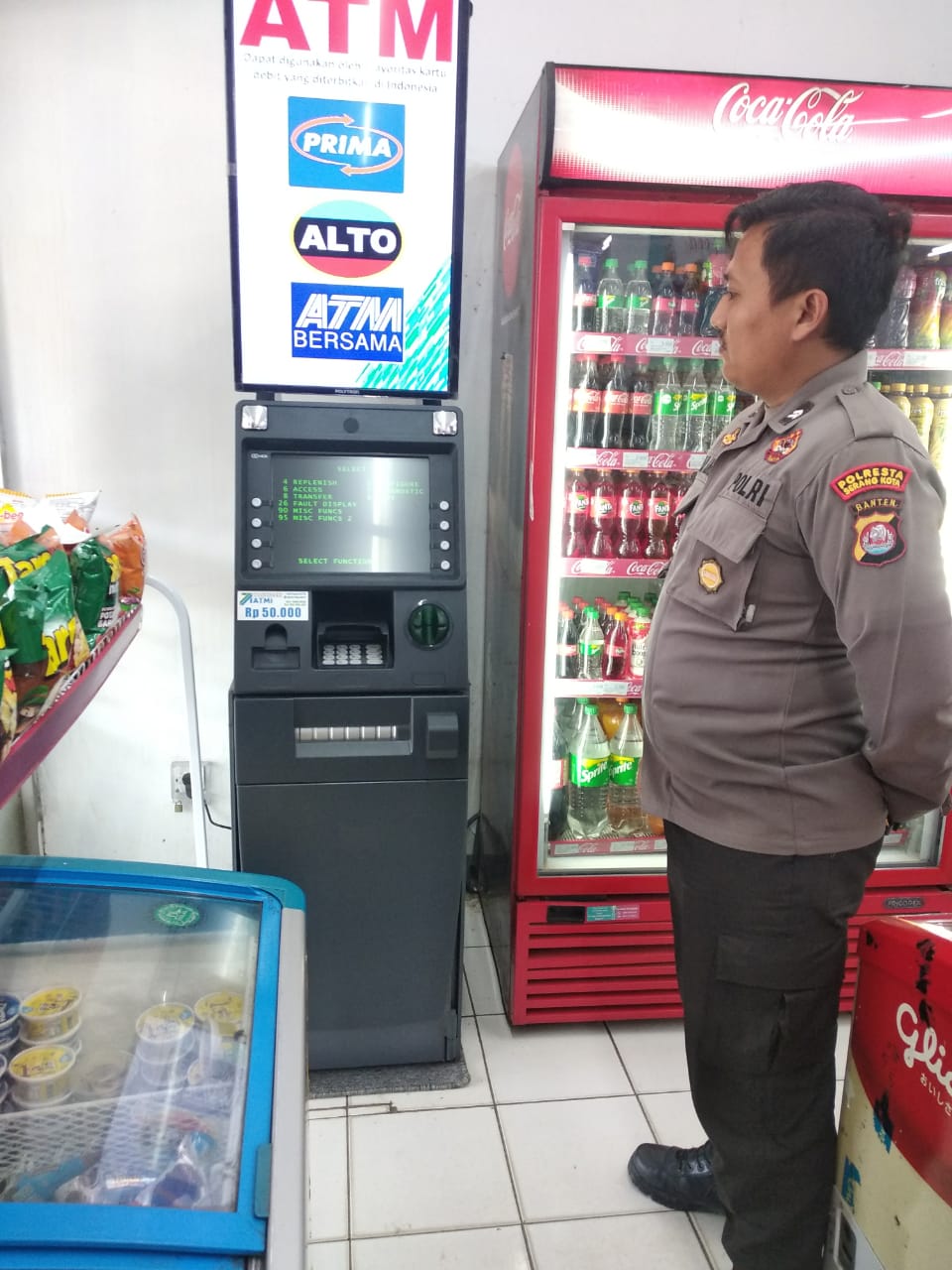 Briptu Dinar Angga beserta anggota Polsek Pabuaran Polres Serkot yang melaksanakan patroli mengatakan “Kami mengantisipasi adanya tindakan kejahatan di mesin ATM seperti kejadian di tempat lain dengan mengambil langkah awal pengecekan di ATM wilayah Kecamatan Pabuaran dan Pastikan tidak ada alat atau benda mencurigakan lainnya”, ucapnya