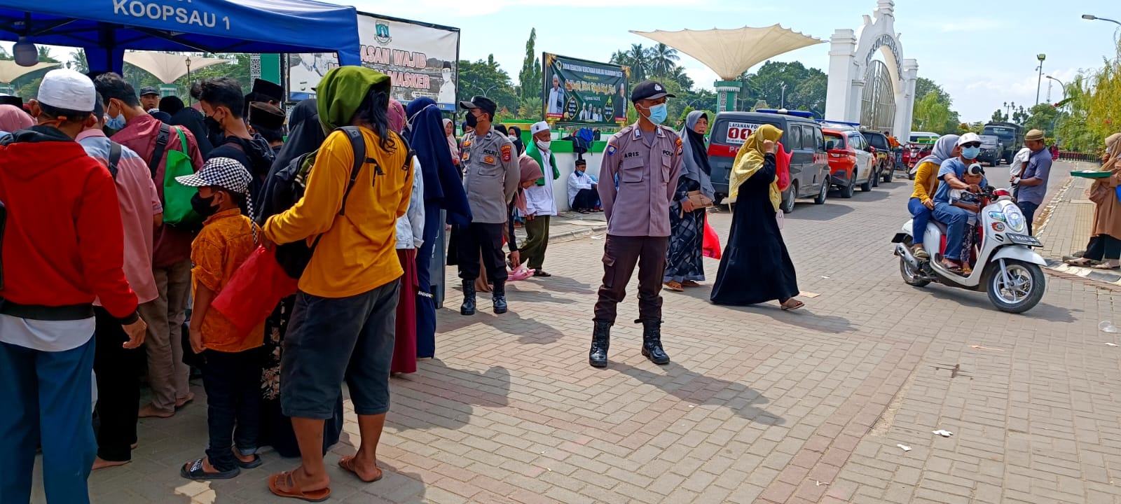 POLRES SERKOT_ Personel Polsek Kasemen Polres Serkot Polda Banten, Bripka Aris dan Brigpol Nurdin gelar patroli di Kawasan Wisata Mesjid Agung Banten Lama Kelurahan Banten Kecamatan Kasemen Kota Serang, Miggu (24/07/2022)