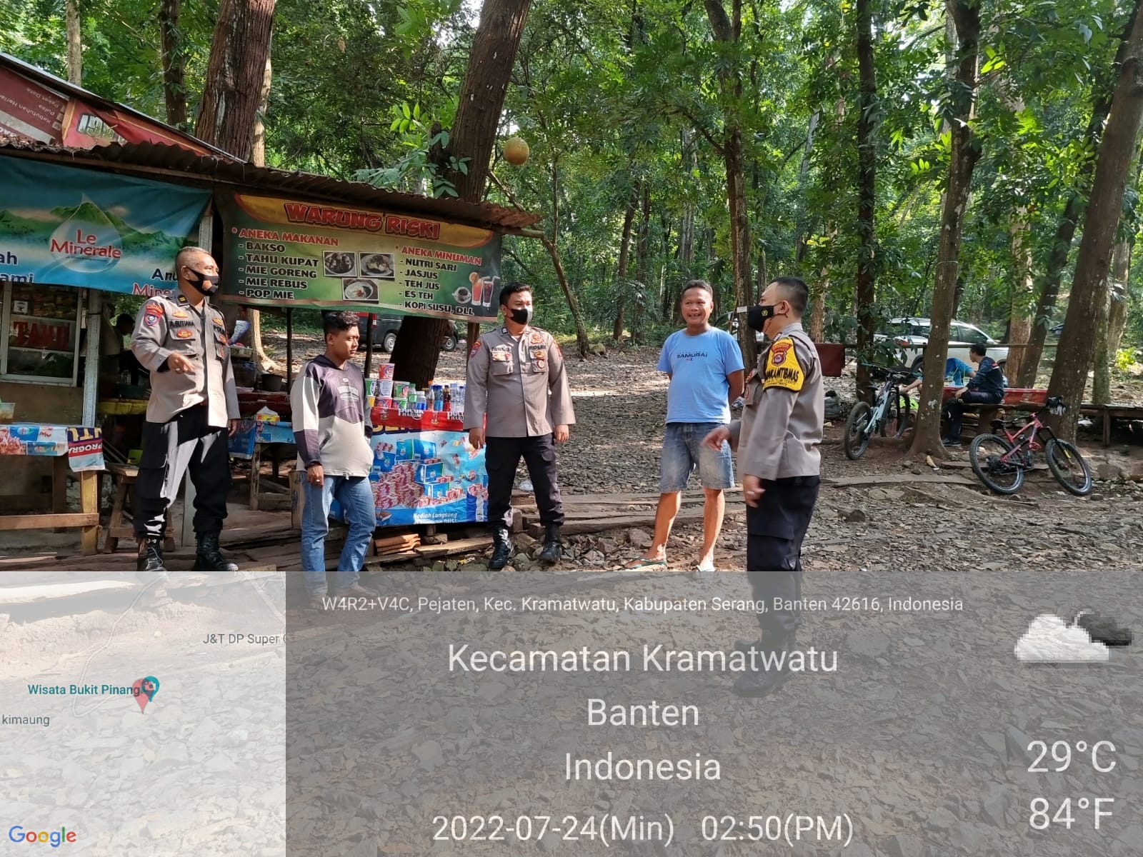 Polresta Serkot | Personil Polsek Kramatwatu Polresta Serkot Polda Banten melaksanakan Patroli dan pengawasan prokes di tempat wisata Gunung Pinang Jl. Raya Serang Cilegon Desa Pejaten Kec. Kramatwatu Kab. Serang. Minggu, (24/7/2022)