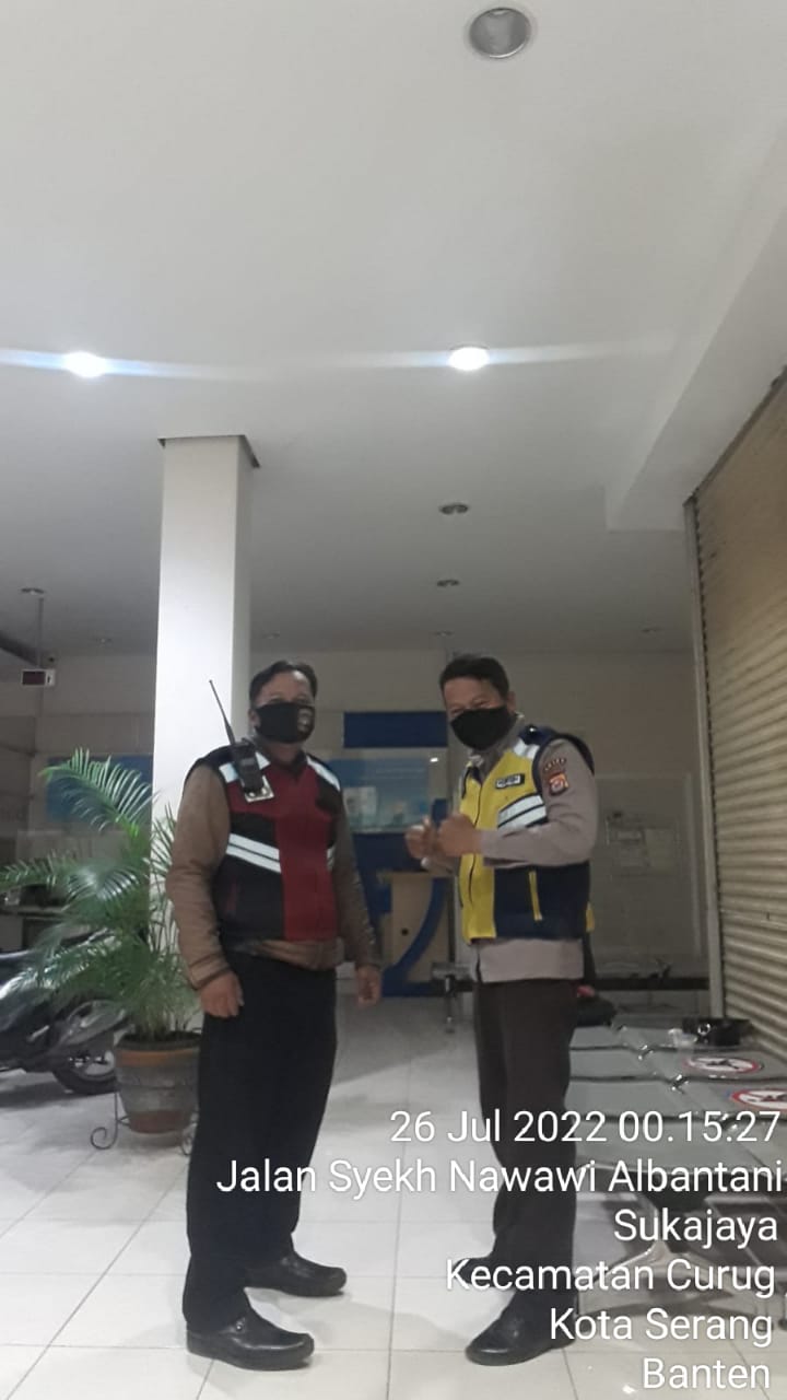 Dalam giat ini, anggota Polsek Curug Polresta Serkot Aipda Andi H dan Aipda Sudarno memberi arahan dan pesan-pesan Kamtibmas kepada Security Bank serta mengingatkan tentang Prokes dan kesiap siagaan saat bertugas antisipasi kejahatan.