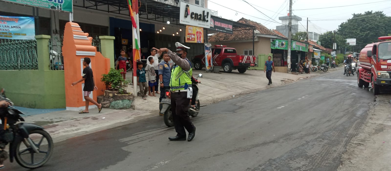 Personil Lalulintas Polsek Serang yang hadir melaksanakan tugas pengaturan lalulintas yaitu Bripka Ganjar anggota Unit Lantas Polsek Serang.