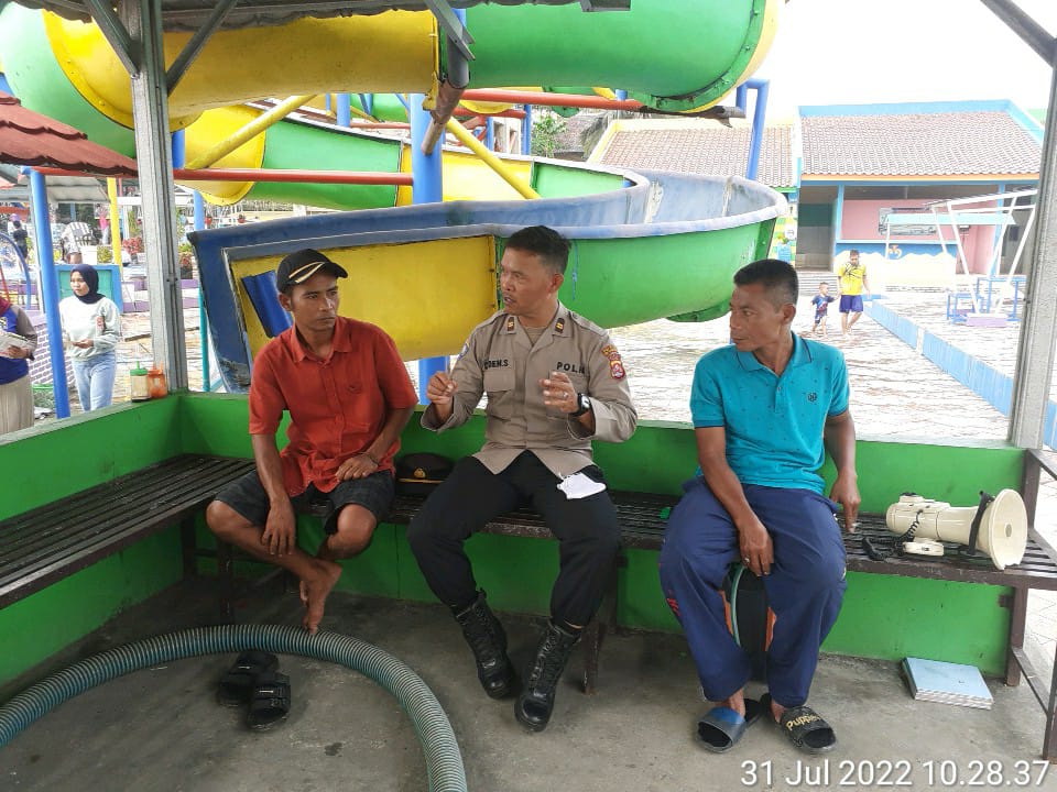 IPTU DEDEN S dan BRIPKA ARIS, Personel Polsek Curug Polresta Serkot Sampaikan himbauan Prokes covid -19 kepada pengunjung tempat wisata kolam renang water boom