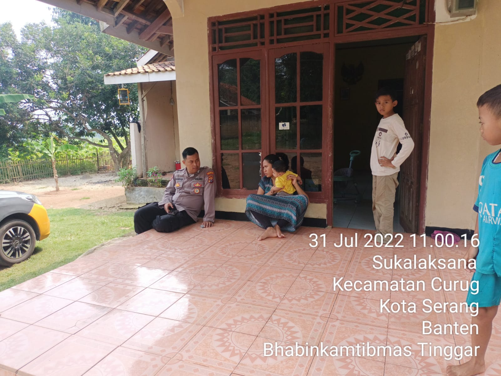POLRESTA SERKOT_ Personel Polsek Curug Polresta Serkot Polda Banten melalui Bhabinkamtibmas Kel Sukalaksana aktif sambangi warga yang bertujuan mengajak menggiatkan secara intensif Poskamling dan memelihara Kamtibmas kegiatan dilaksanakan pada Minggu(31/07/22)
