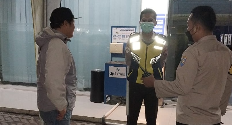 POLRESTA SERKOT | Untuk mengantisipasi terjadinya gangguan kamtibmas Personel Polsek Baros Bripka Rojali dan Bripka Iskandar melaksanakan patroli dialogis bersama petugas security kantor Bank BJB unit Baros menyampaikan himbauan kamtibmas, Jumat (12/8/2022) malam.