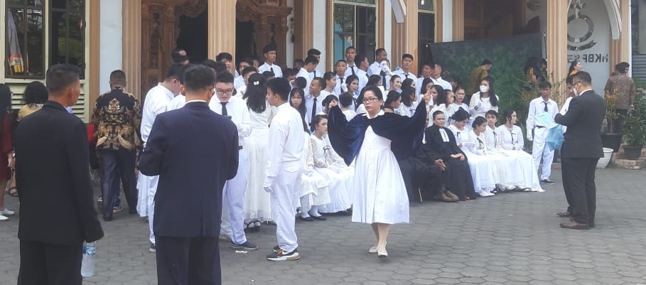 Anggota Polsek Serang Ida Tukiono, Ipda Joni Erik, Aupda Ajis Muslim memastikan keamanan ibadah rutin tersebut yang berjaga di sekitar Gereja.