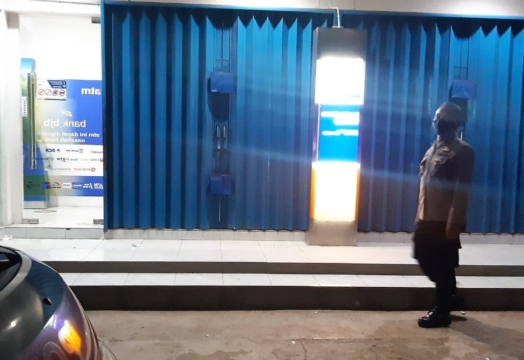 Kanit Samapta Polsek Ciomas Polresta Serkot Ipda Suwarto dan Briptu Ferry melaksanakan patroli malam sasaran Atm.