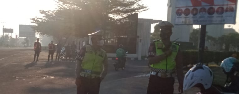 POLRESTA SERKOT_ Kapolsek Curug Polresta Serkot berserta personil gabungan polres Gelar Pengamanan dan pendisiplinan prokes gowes kebangsaan dalam rangka memperingati HUT RI yang ke-77 tibgkat Propinsbli di KP3B-Propinsi Kel Cilaku Kec Curug Kota Serang. (14/08/22)