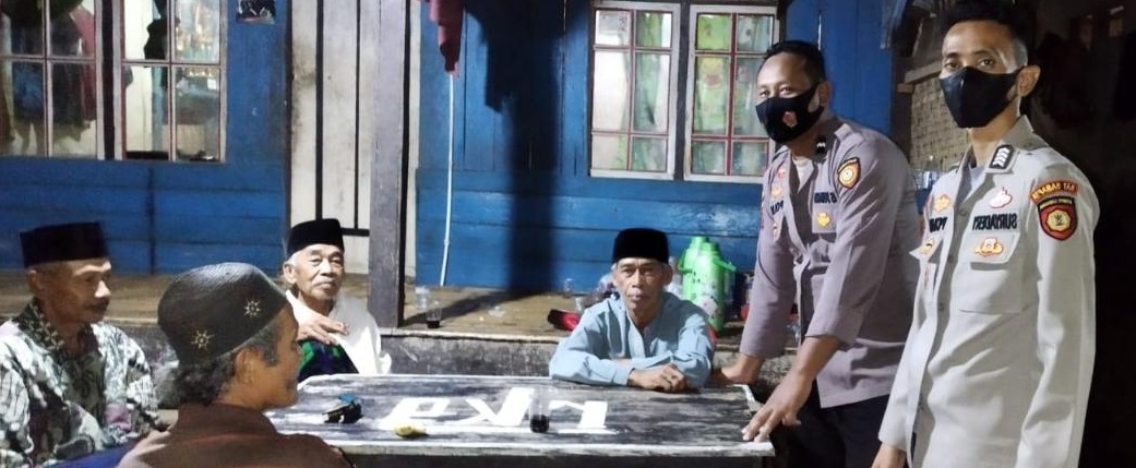 Kanit Binmas Aipda Isjuanto dan Bripka Dery menyambangi warga yang melakukan ronda malam.