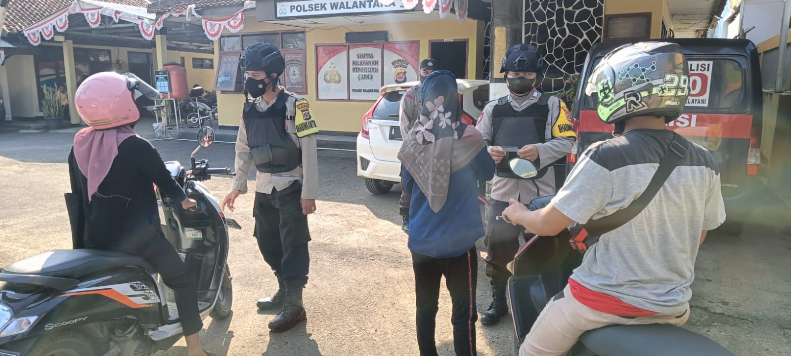 Dengan bentuk Kegiatan melayani, mencatat Indentitas yang datang ke Mako Polsek Walantaka, Melakukan pengaturan keluar masuk Tamu / Masyarakat ke Mako Polsek Walantaka Melakukan Pemeriksaan Kendaraan, barang dan Orang dengan tetap menjalankan Protokol Kesehatan.