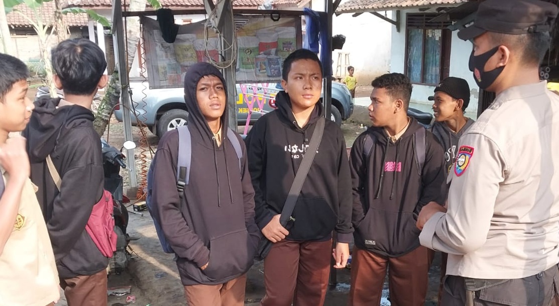 POLRESTA SERKOT | Dalam mengantisipasi terjadinya kenakalan remaja, Bhabinkamtibmas Desa Sindangmandi Polsek Baros Polresta Serkot memberikan pesan kamtibmas kepada siswa salah satu sekolah yang ada dikecamatan Baros yang kebetulan ditemui di pinggir jalan Kampung Sigeger Desa Sindangmandi Kec. Baros Kab serang. (19/08)
