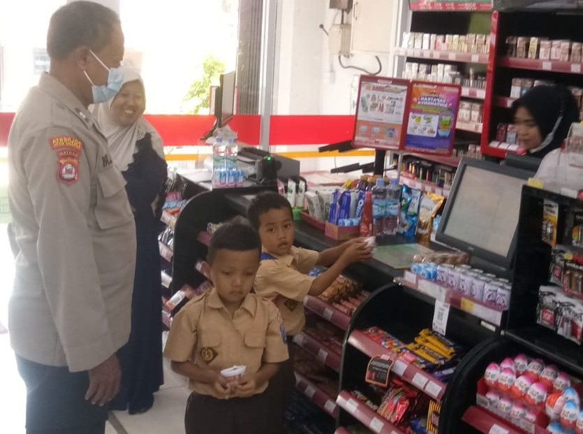 POLRESTA SERKOT – Personil Polsek Pabuaran Polresta Serkot Polda Banten Aiptu Herdi Rosidin bersama Anggota melaksanakan Patroli dialogis dengan mendatangi Alfamart maupun indomart pastikan aman memberikan himbauan Kamtibmas serta mengingatkan kembali himbauan dan edukasi protokol kesehatan kepada pelayan untuk selalu menerapkan 5 M Protokol Kesehatan. (19/08)