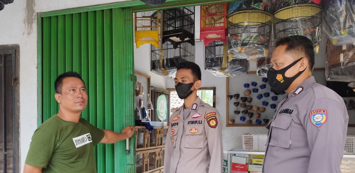 Bhabinkamtibmas Bripka Sandi mengajak pedagang Burung untuk patuhi Prokes.