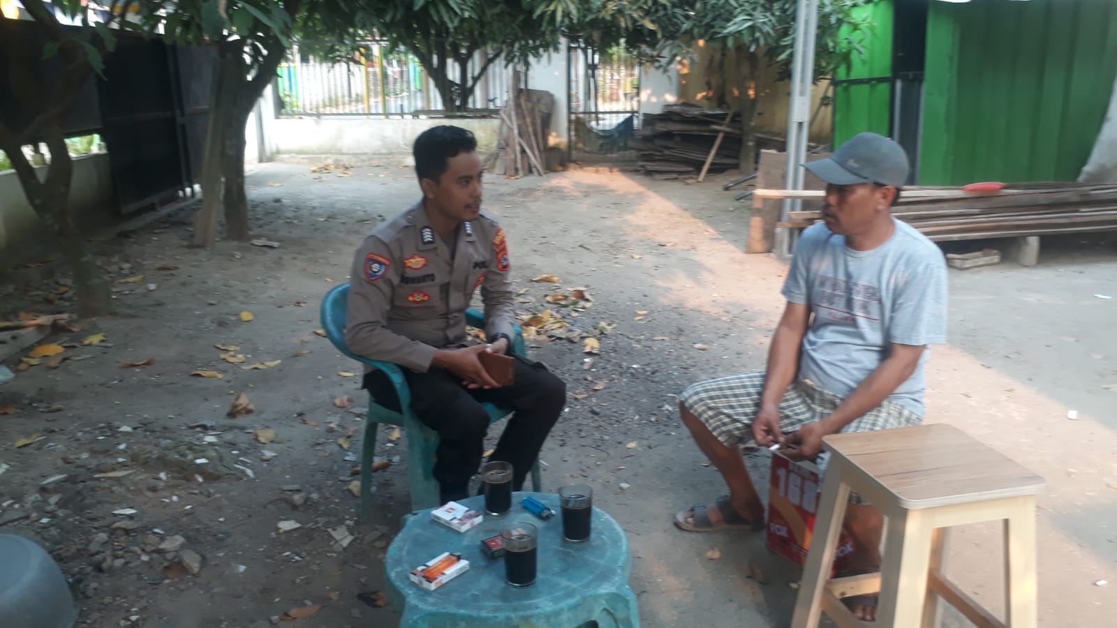 Pada kesempatan tersebut Bripka Siswanto Selaku Bhabinkamtibmas melaksanakan patroli dialogis sambil berbincang santai dengan masyarakat dan menyampaikan himbauan Kamtibmas serta jalin komunikasi dengan baik sebagai upaya menjaga lingkungan yang kondusip.