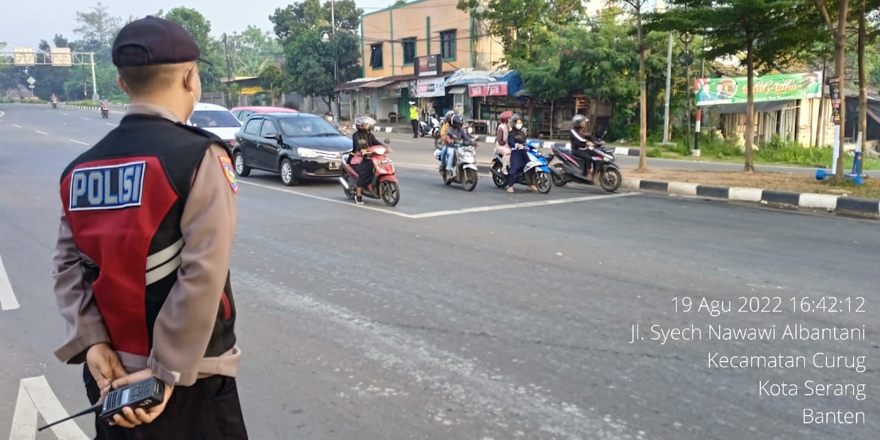 Polresta Serkot – Anggota Polsek Curug Polresta Serkot Polda Banten rutin menggelar kegiatan pengaturan lalu lintas (gatur) di sore hari. Hal itu lantaran arus lalu lintas kendaraan kerap meningkat jelang berakirnya aktivitas masyarakat.