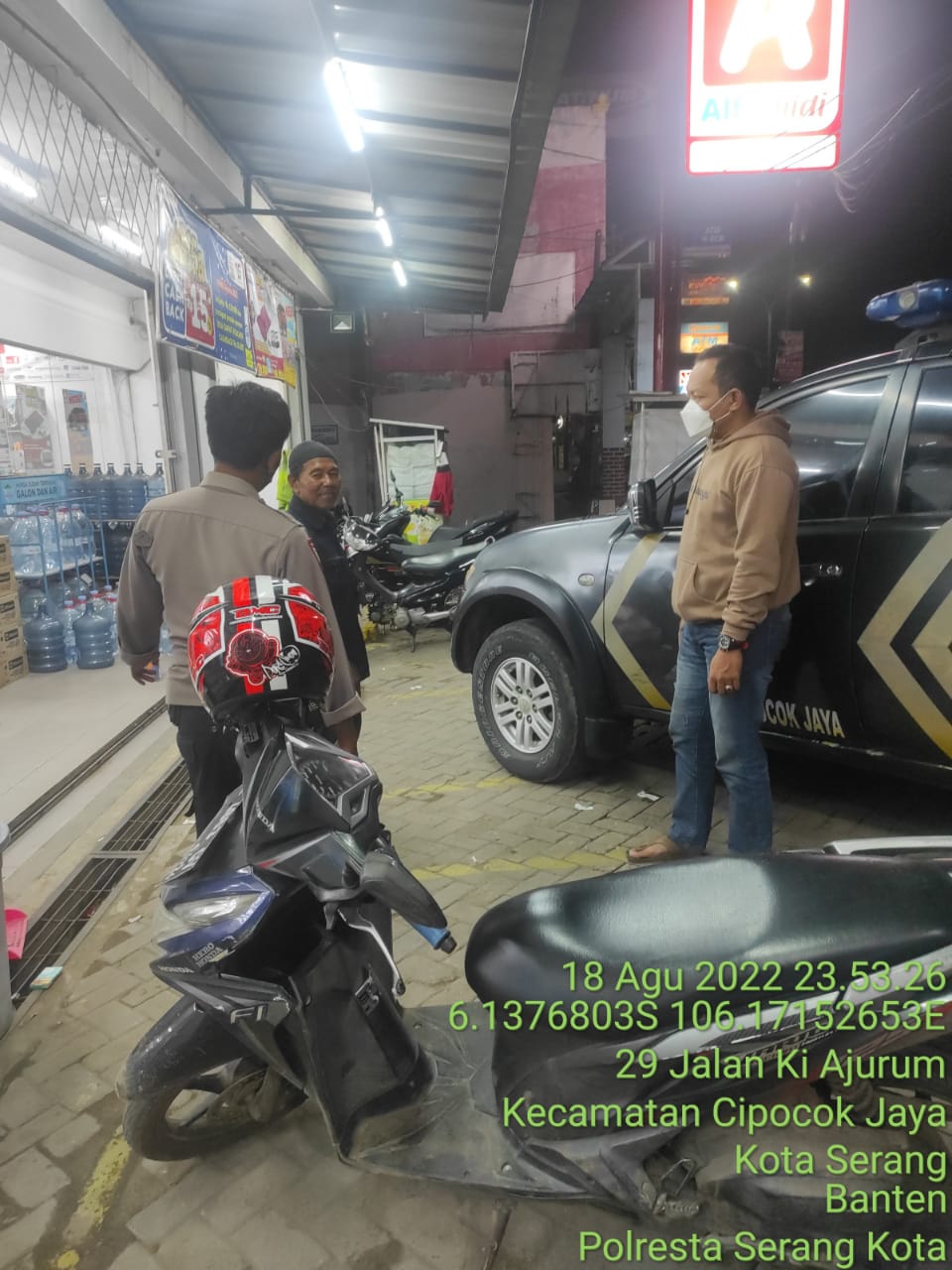 Kegiatan Patroli Dialogis Cegah Gangguan Kamtibmas tersebut dilakukan di Parkiran Toko Cipocok Jaya Kecamatan Cipocok Jaya Kota Serang, Pada Kamis (18/08).