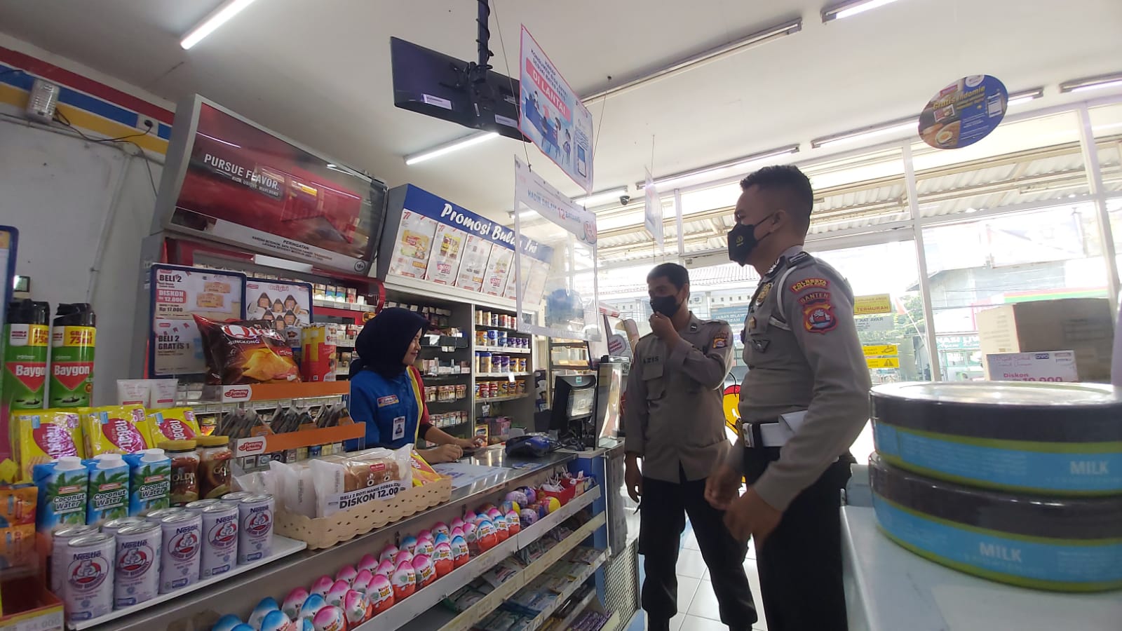 POLRESTA SERKOT – Personil Polsek Taktakan Polresta Serkot Polda Banten Aipda Abdul Aziz bersama Anggota melaksanakan Patroli dialogis dengan mendatangi Alfamart maupun indomart pastikan aman memberikan himbauan Kamtibmas serta mengingatkan kembali himbauan dan edukasi protokol kesehatan kepada pelayan untuk selalu menerapkan 5 M Protokol Kesehatan. (20/08)