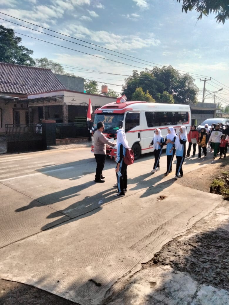 Kegiatan Anggota Polsek Pabuaran Polresta Serkot,dengan melaksanakan pengaturan arus lalu lintas supaya lancar serta membantu masyarakat yang ingin menyebrang jalan.