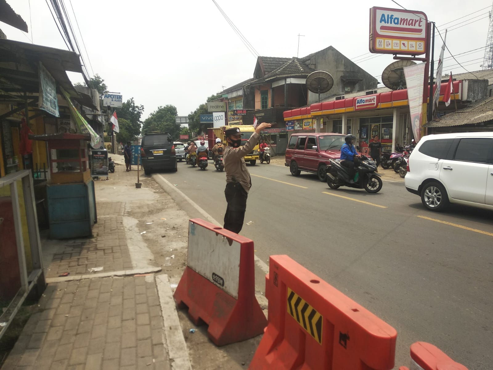 POLRESTA SERKOT | Anggota Polsek Baros Polresta Serkot Polda Banten melaksanakan giat strong poin atau gatur arus lalin pagi pada hari weekend di ruas jalan wisata Serang-Pandeglang, Minggu (21/8/2022) Pagi.