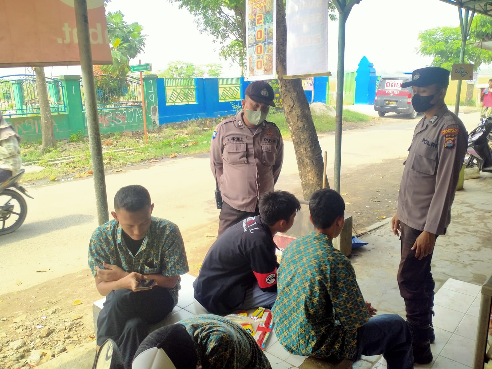 Bhabinkamtibmas, menyempatkan untuk berdialog sejenak, sembari memberikan pesan-pesan Kamtibmas.