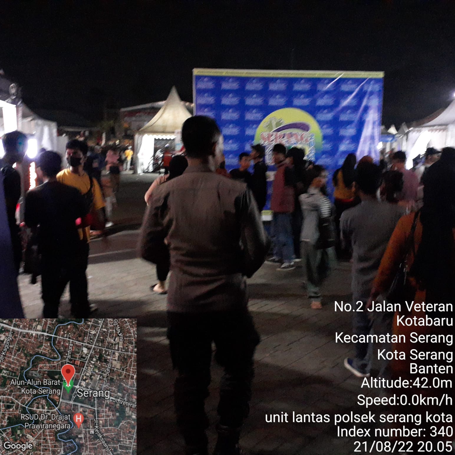 POLRESTA SERKOT_ Personel Polsek Serang Polresta Serkot gelar pengamanan Serang Fair 2022 di alun-alun Kota Serang, Minggu (21/08) malam.