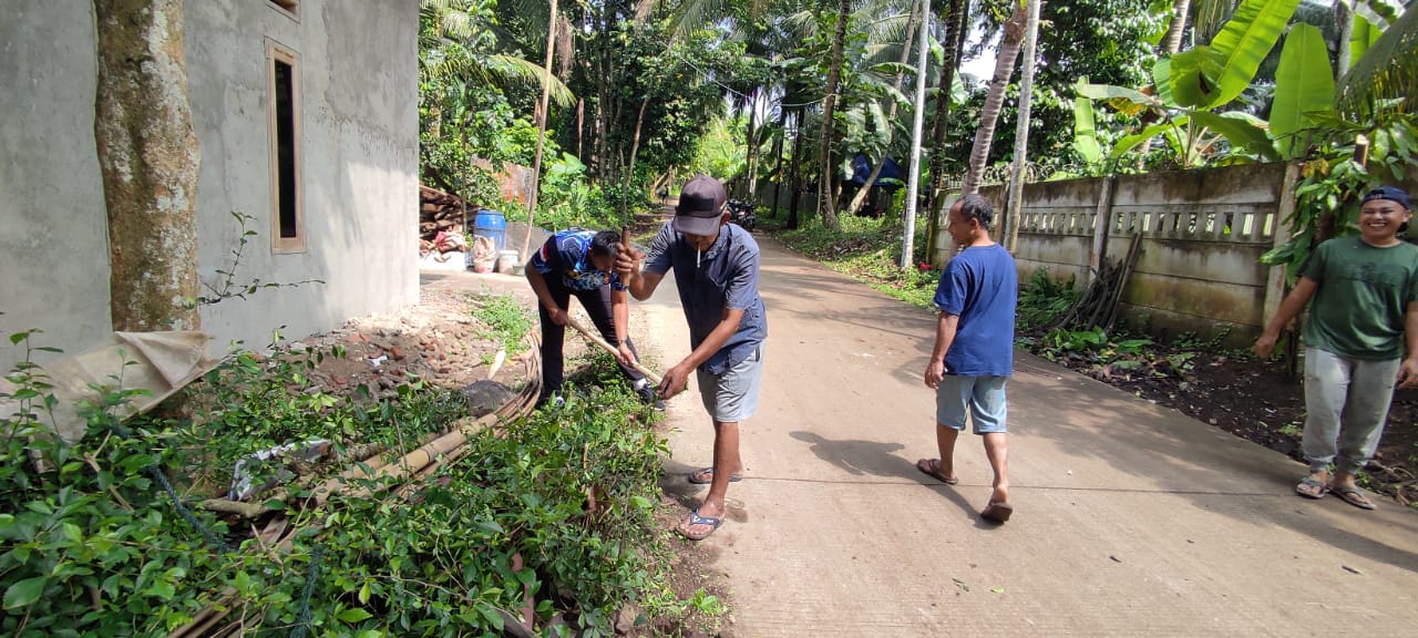 POLRESTA SERKOT |Bhabinkamtibmas Polsek Baros Polresta Serkot Polda Banten Brigpol Doni bersama-sama warga masyarakat bergotong royong turut membantu membersihkan dan merapihkan rumput-rumput rindang di sepanjang jalan Desa Curug Agung Kecamatan Baros Kabupaten Serang, Minggu (11/9/2022) pagi.