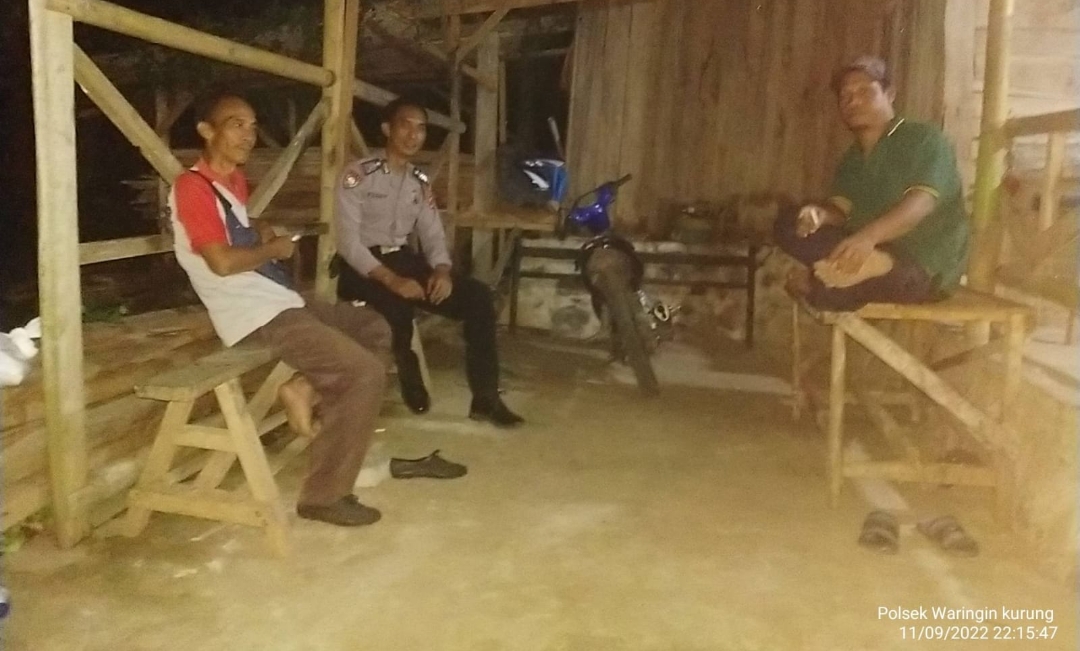Bhabinkamtibmas Polsek Waringinkurung Bripka Febriana Eka melaksanakan sambang warga pada malam hari. Tepatnya di Kampung Nagreg II Desa Melati Kecamatan Waringinkurung Kabupaten Serang, Senin (12/09/2022).