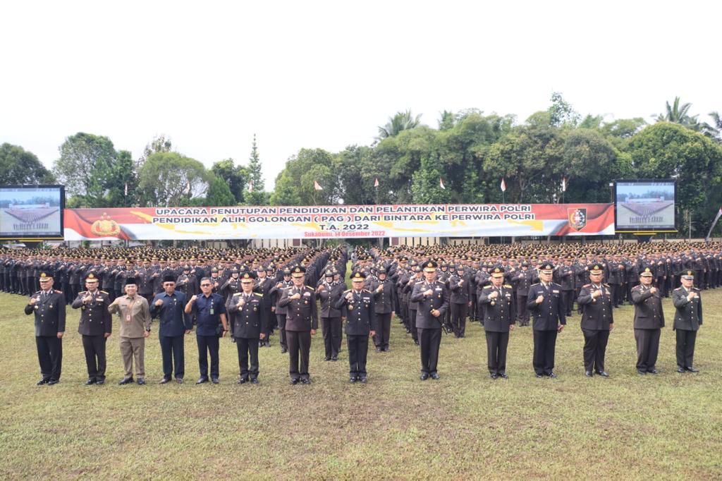 Infoxpos.com – Sukabumi – Sebanyak 1.254 Bintara Kepolisian Republik Indonesia resmi menyandang status perwira. Ke 1.254 Bintara Polri ini kini menyandang pangkat Inspektur Polisi Dua atau IPDA dan secara resmi telah dilantik menjadi perwira oleh Wakil Kepala Lembaga Pendidikan dan Pelatihan (Lemdiklat) Polri Irjen Pol Drs. Eko Budi Sampurno, M.Si pada upacara penutupan program Pendidikan Alih Golongan (PAG) gelombang II tahun 2022 Resimen Tadya Maharana Kivandra (TMK) di Sekolah Pembentukan Perwira (SETUKPA) Lemdiklat Polri, Kota Sukabumi, Provinsi Jawa Barat, Rabu, (14/12/2022).