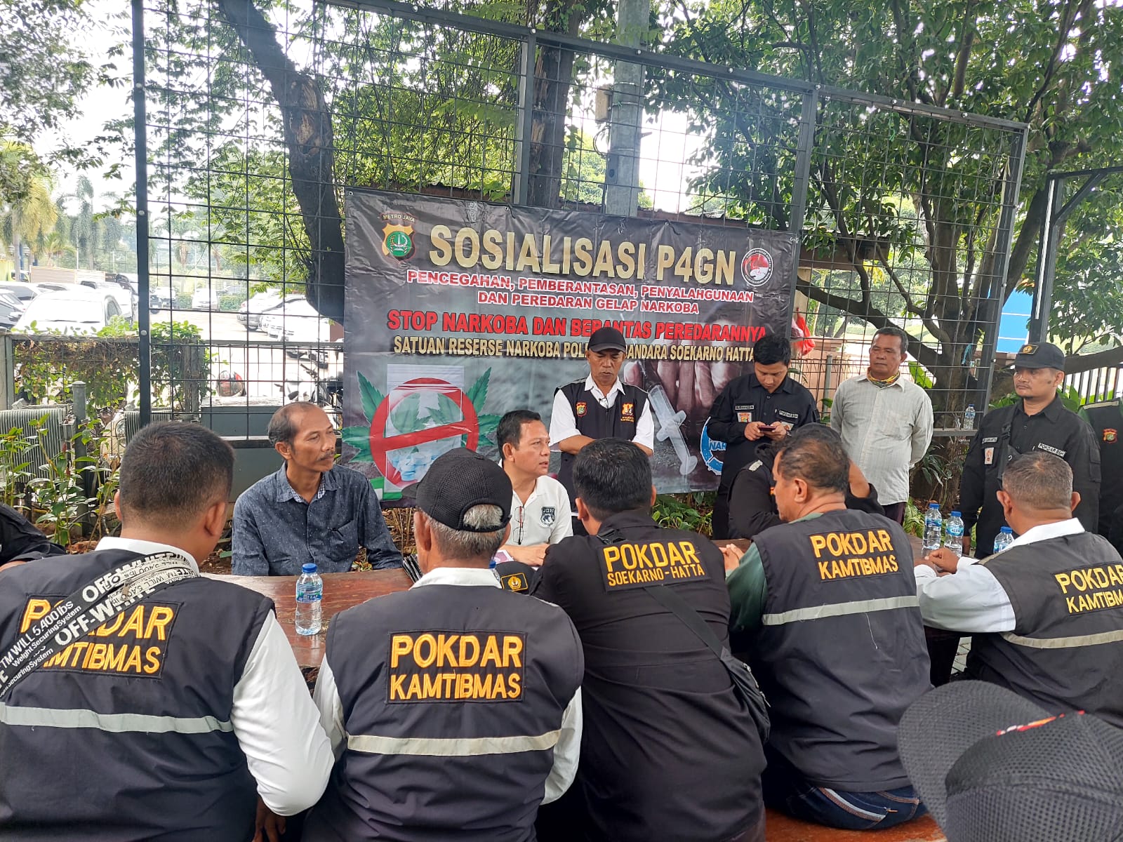 Peserta sosialisasi yaitu Yudi selaku Ketua Pokdar Kamtibmas Polresta Bandara Soetta, anggota Pokdar Kamtibmas Polresta Bandara Soetta dan staf Satresnarkoba.