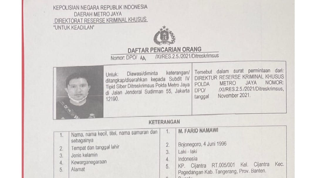 Pada November 2021, Polda Metro Jaya mengeluarkan surat Daftar Pencarian Orang (DPO) dengan nomor DPO/AA/XI RES.2.5/2021/Ditreskrimsus atas nama Farid Nawawi. Namun, Teddy merasa kecewa karena tidak ada tindakan lebih lanjut dari pihak kepolisian dalam menangkap pelaku.