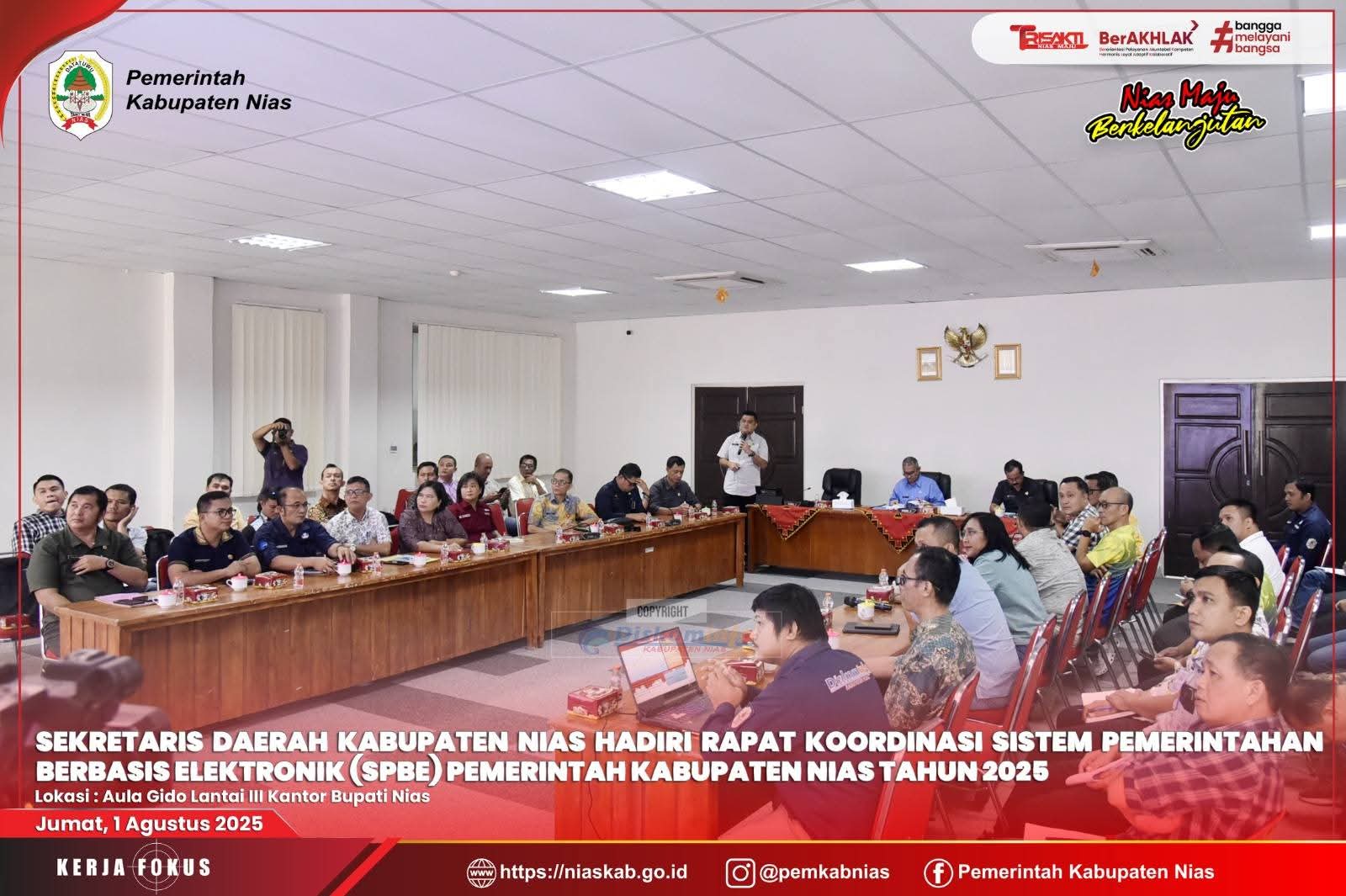Media Infoxpos.com – Nias – Pemerintah Kabupaten Nias melalui Dinas Komunikasi dan Informatika Kabupaten Nias menggelar Rapat Koordinasi Sistem Pemerintahan Berbasis Elektronik (SPBE) di Lingkungan Pemerintah Kabupaten Nias, bertempat di Aula Gido Lantai III Kantor Bupati Nias. Jumat (01/8/25)