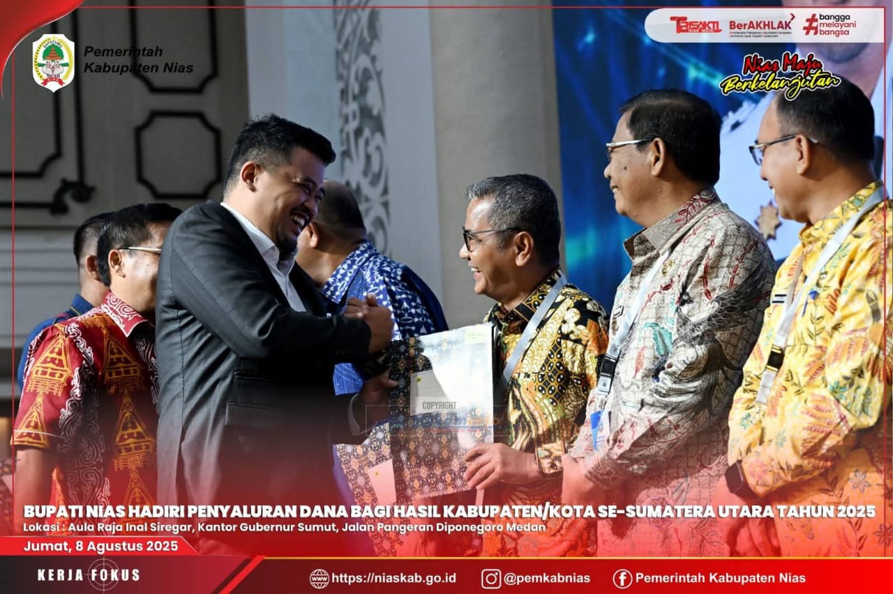 Media Infoxpos.com – Nias – Bupati Nias, Yaatulo Gulo, S.E., S.H., M.Si menghadiri acara resmi Penyerahan Dana Bagi Hasil (DBH) Tahun 2025 untuk seluruh Kabupaten/Kota di Provinsi Sumatera Utara, bertempat Aula Raja Inal Siregar Kantor Gubernur Sumatera Utara. Jum’at (8/8/25)