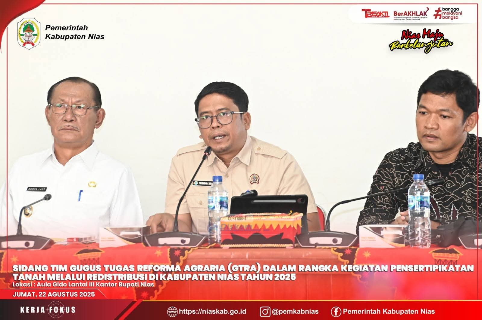 Media Infoxpos.com – Nias – Pemerintah Kabupaten Nias menggelar Sidang Tim Gugus Tugas Reforma Agraria (GTRA) dalam rangka Pensertipikatan Tanah melalui Redistribusi di Kabupaten Nias Tahun 2025, bertempat di Aula Gido Lantai III Kantor Bupati Nias. Jum’at (22/8/25)