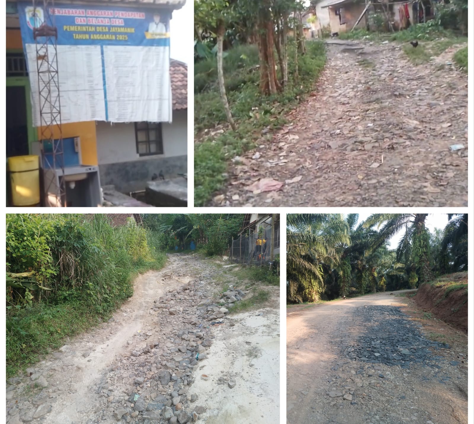 Hasil pantauan langsung awak media di lapangan menunjukkan tidak adanya tanda-tanda perbaikan berarti. Papan nama desa tampak kusam, dinding kantor desa mulai mengelupas, dan kondisi jalan yang seharusnya dipelihara masih rusak tanpa perubahan signifikan.
