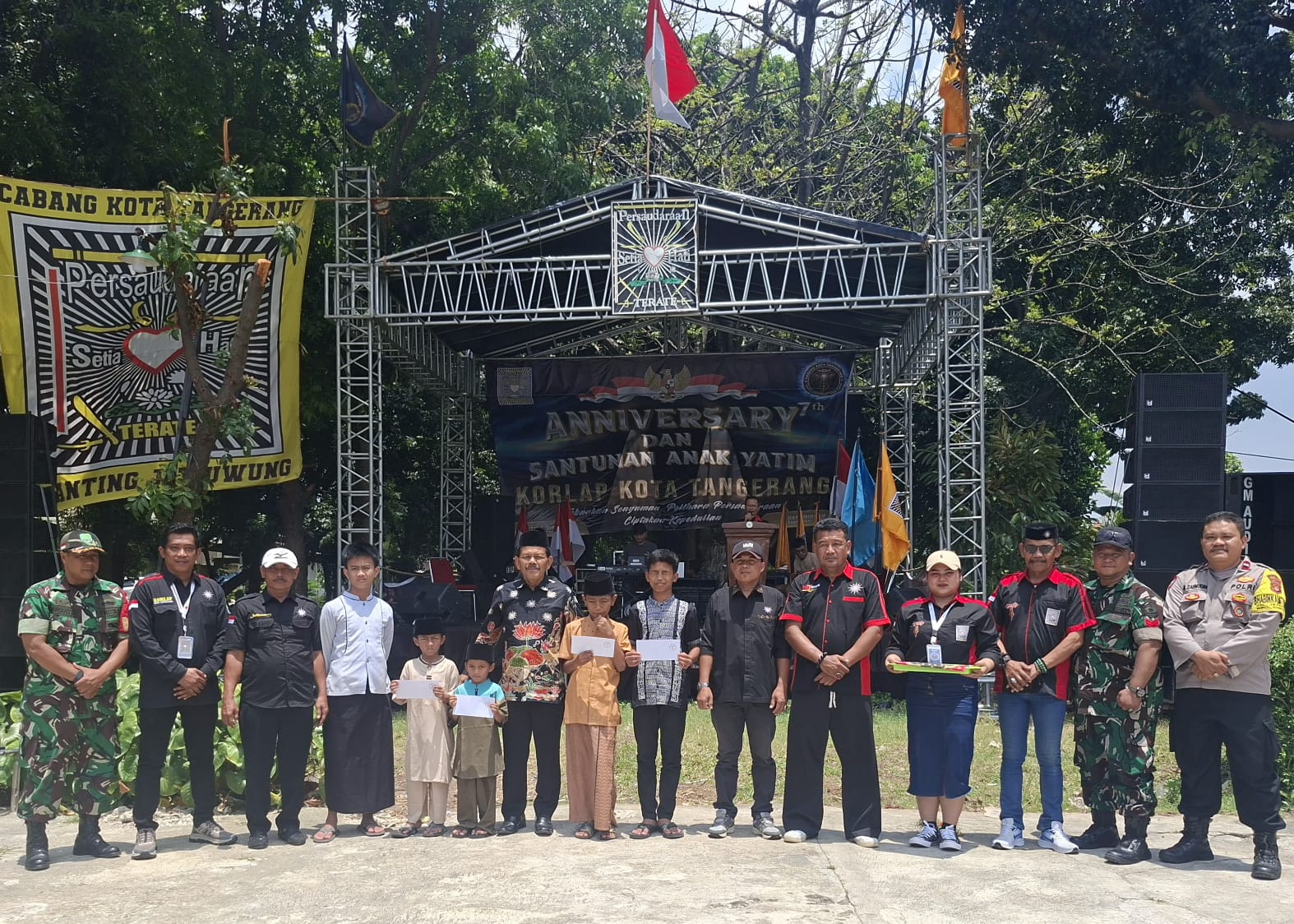 Media Infoxpso.com – TANGERANG KOTA | Korlap PSHT Kota Tangerang menggelar Anniversary ke 7 dan santunan anak yatim di halaman parkir PT Lucky Indah Keramik Kota Tangerang. Minggu, 28/09/2025.