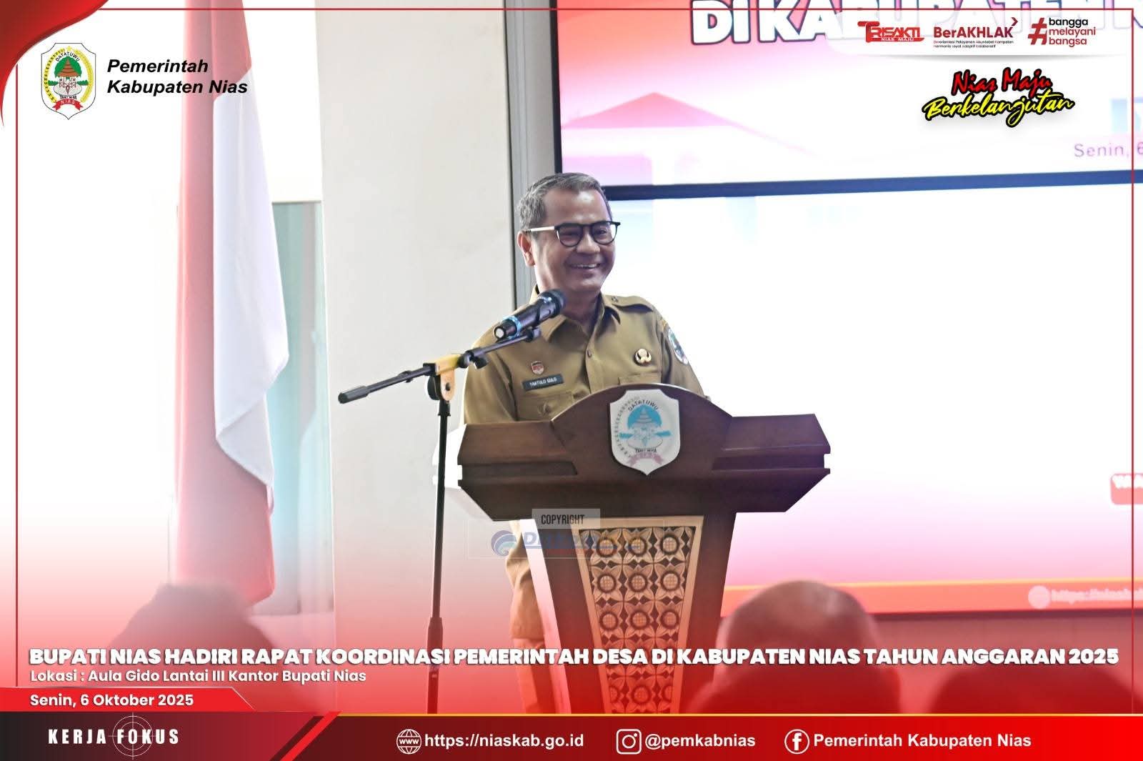 Media Infoxpos.com – Nias – Senin, 06 Oktober 2025. Pemerintah Kabupaten Nias menggelar Rapat Koordinasi (Rakor) Pemerintahan Desa Tahun Anggaran 2025 sebagai upaya mengoptimalkan pelaksanaan, evaluasi, dan pelaporan penyelenggaraan pemerintahan desa.