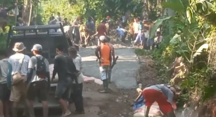 Perbaikan jalan dilakukan secara swadaya oleh masyarakat setempat dengan anggaran seadanya. Kegiatan tersebut juga mendapat dukungan dari pemerintah desa di tiga wilayah tersebut, serta melibatkan sejumlah unsur masyarakat dan organisasi kemasyarakatan.