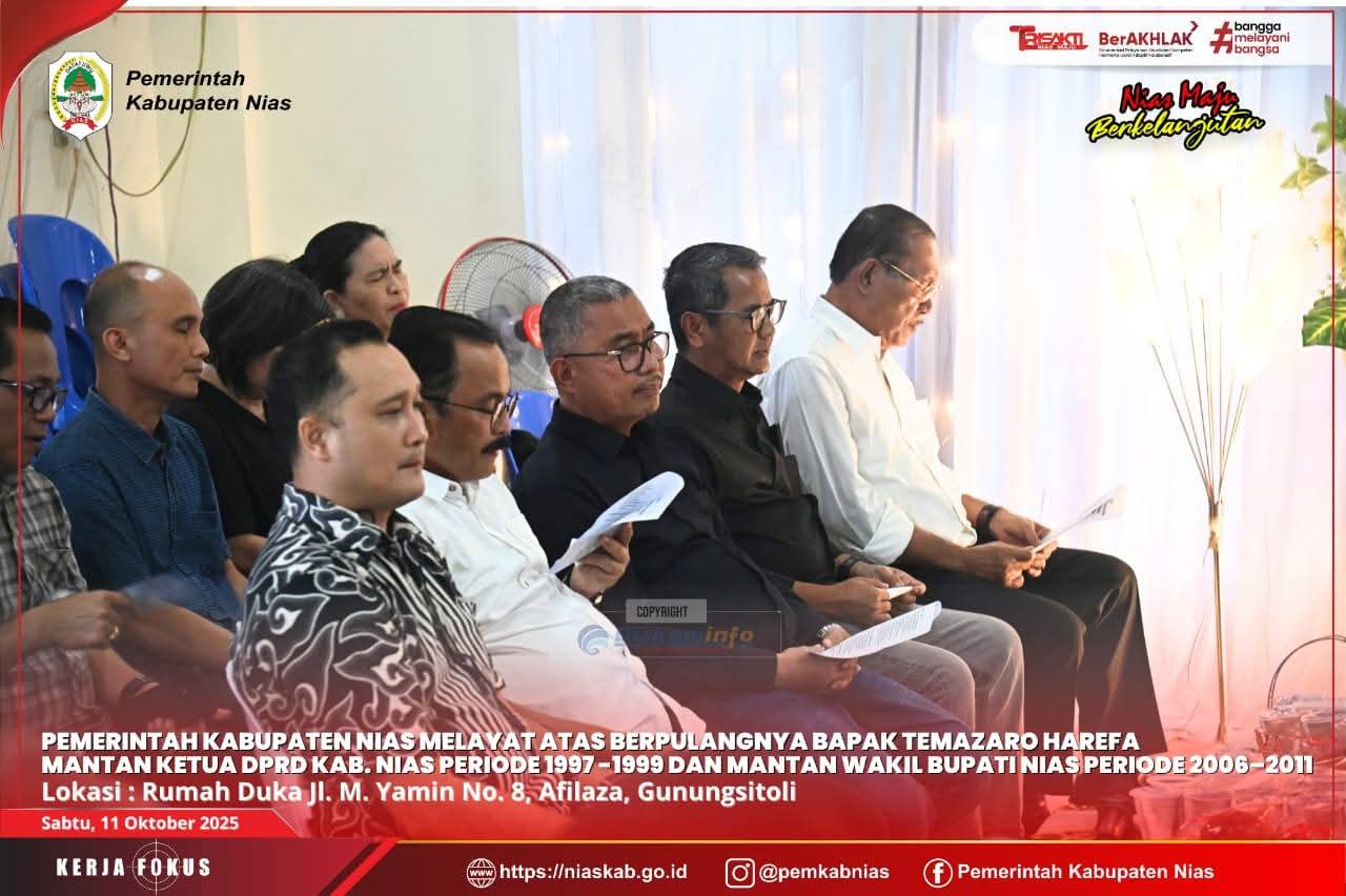 Media Infoxpos.com – Nias – Sabtu, 11 Oktober 2025. Pemerintah Kabupaten Nias melayat atas meninggalnya Bapak Temazaro Harefa, mantan Ketua DPRD Kabupaten Nias periode 1997-1999 dan Wakil Bupati Nias periode 2006–2011, bertempat di Rumah Duka Jl. M. Yamin No. 8, Afilaza, Gunungsitoli.