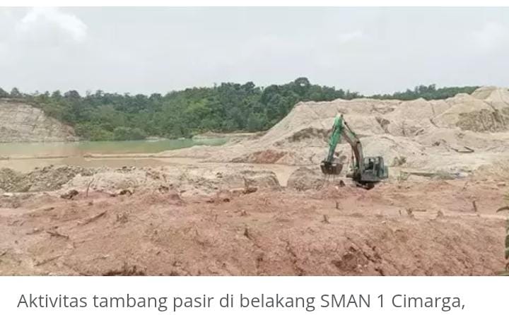 Aktivitas tambang pasir di belakang SMAN 1 Cimarga, Lebak, Banten, yang menuai protes warga dan warganet Setelah sebelumnya sempat heboh dengan kasus kepala sekolah yang menampar siswanya karena kedapatan merokok di lingkungan sekolah, SMAN 1 Cimarga, Kabupaten Lebak, Banten, kembali menjadi sorotan publik.