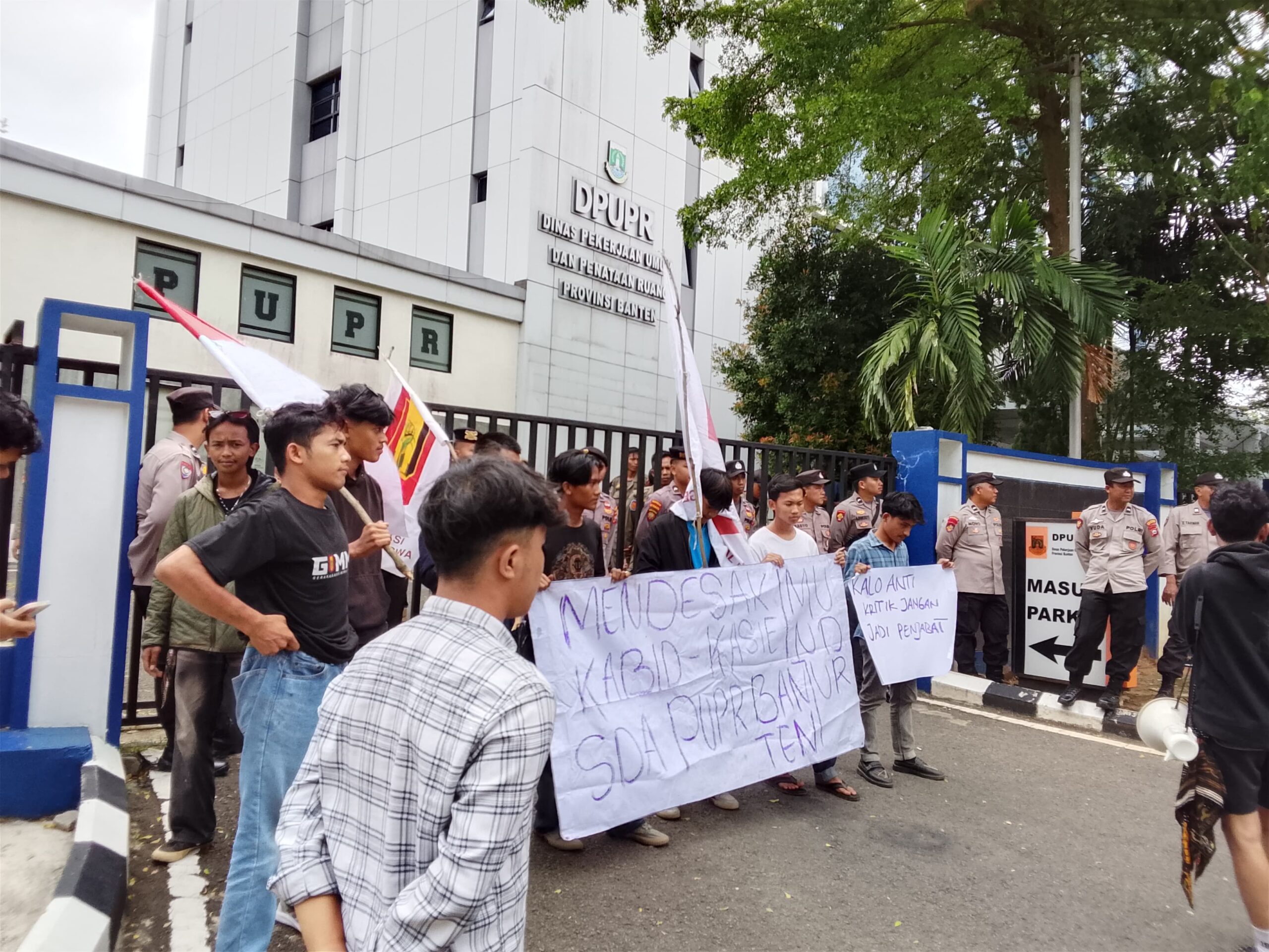“Kami mendesak Kadis PUPR Banten agar mencopot Kabid dan Kasie SDA DPUPR Banten dari jabatannya karena di duga gagal menjalankan fungsi monitoring di setiap paket pekerjaan yang di bidang SDA.”
