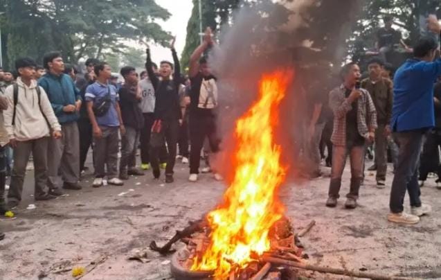 Media InfoXpos.com – Lebak – Demonstrasi mahasiswa di depan gerbang Gedung Sekretariat Daerah (Setda) Kabupaten Lebak, Banten, diwarnai kericuhan, Selasa (2/12/2025).