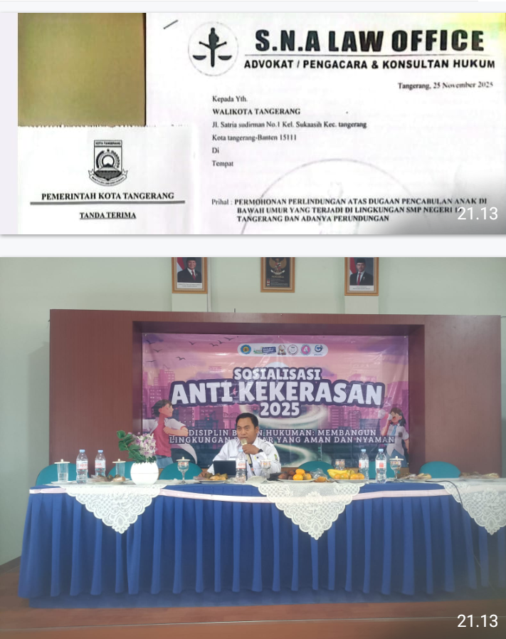Media Infoxpos.com – KOTA TANGERANG, – Siswi SMPN yang diduga menjadi korban pencabulan anak dibawah umur menyampaikan permohonan perlindungan kepada Walikota Tangerang dan DPRD Kota Tangerang melalui S. N. A Law Office. Selasa, 2 Desember 2025.