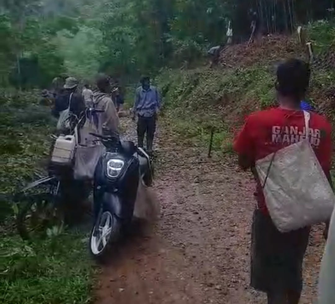 Pantauan awak media di lapangan, puluhan warga turun langsung ke lokasi membawa cangkul, sekop, ember, dan peralatan sederhana lainnya. Mereka menimbun jalan yang berlubang menggunakan material seadanya seperti batu dan tanah agar bisa kembali dilalui kendaraan roda dua maupun roda empat.