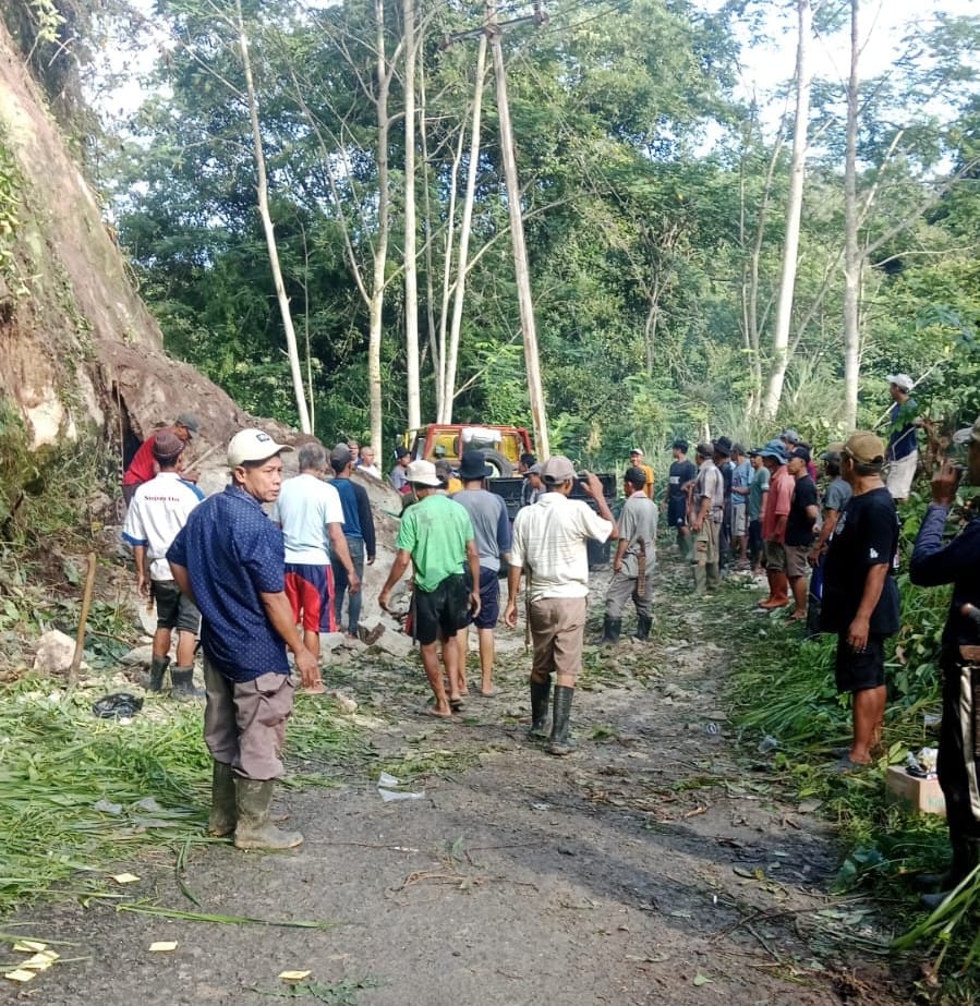 Longsor yang terjadi akibat curah hujan tinggi dalam beberapa waktu terakhir menyebabkan badan jalan Tertimbun Longsoran Tanah dan Bebatuan, dan nyaris terputus. Kondisi tersebut sangat mengganggu aktivitas warga, mulai dari anak sekolah, petani, hingga akses perekonomian masyarakat setempat.