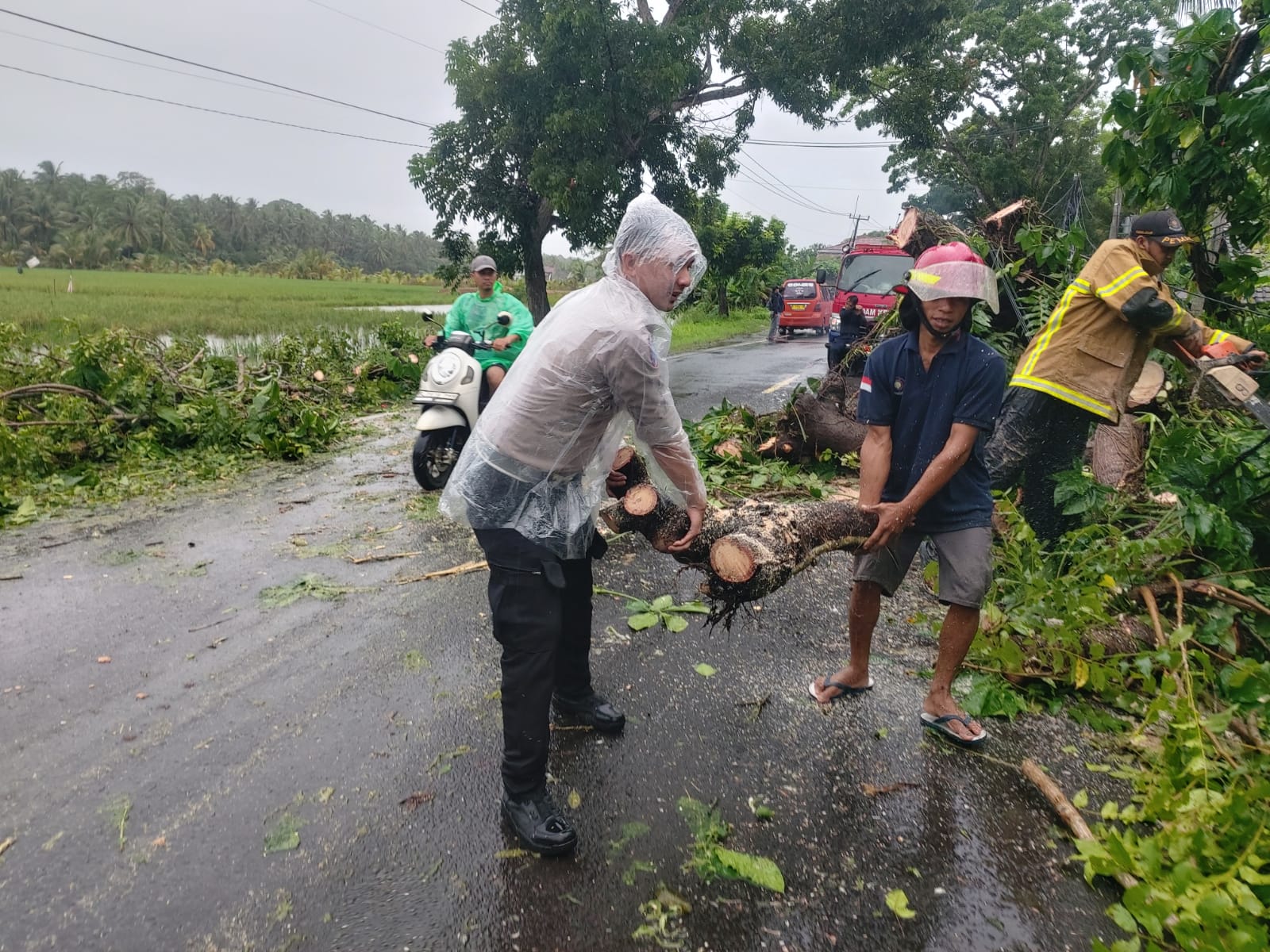 Peristiwa pohon tumbang tersebut terjadi akibat curah hujan yang cukup tinggi disertai angin kencang yang melanda wilayah Kecamatan Labuan dan sekitarnya. Akibat kejadian tersebut, sebuah pohon berukuran cukup besar roboh dan melintang di badan jalan, sehingga menghambat aktivitas masyarakat serta berpotensi menimbulkan kecelakaan lalu lintas.
